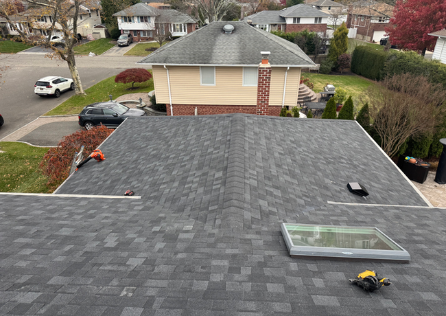 After carefully inspecting and analyzing the condition of the roof, we carefully removed the old shingles and assured all the planking was properly set. From there, we added top quality sheathing to provide weather protection and insulation. Despite the various angles of this roof, we completed the job with every shingle perfectly squared.